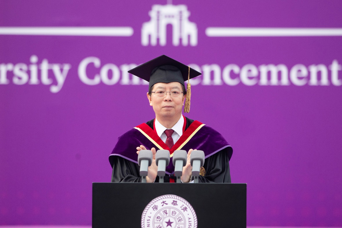 He called on everyone to remember the school motto of "Self-discipline and Social Commitment," promote the Tsinghua spirit of dedication to the country and pursuit of excellence, and integrate their personal aspirations with the great mission. He encouraged graduates to uphold the school ethos of “Actions Speak Louder Than Words”, contributing through actions to the great cause of building a strong nation and achieving national rejuvenation, thus writing an unforgettable chapter of their youth.