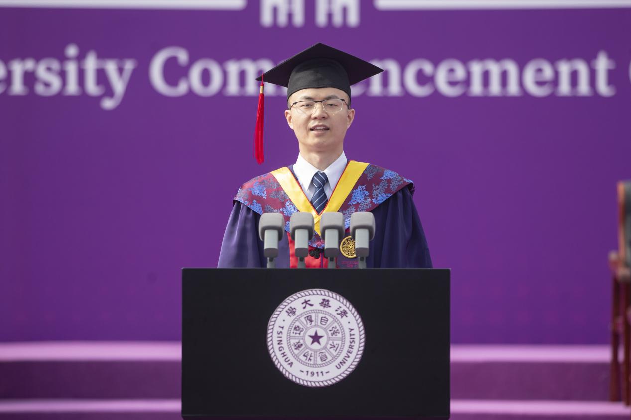 Chen Qiang from the Tsinghua Department of Chemical Engineering, as the representative of graduate graduates, gave a speech titled "Three Moments at Tsinghua." He recounted stories of growth, perseverance, and decision-making, establishing a steadfast commitment to scientific research, cultivating the courage to overcome challenges, and affirming a dedication to teaching and nurturing. Chen expressed his gratitude to mentors and peers and announced his future commitment to teaching and research at Southwest University, aiming to contribute to the development of higher education and technology in the western regions of the country. He urged his fellow graduates to cherish this moment, embody the Tsinghua spirit, and shine brightly for the nation and its people.