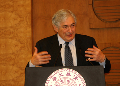 Mr. Wolfensohn first made an introduction about the Global Conference on Scaling Up Poverty Reduction closed in Shanghai two days ago, and he considered this trip to China as “carrying the mission of discussing the questions of poverty and trying to dealing in scale and in size with poverty”. He praised China for the rapid economic development as well as its achievement in the worldwide battle against poverty. However, as he stressed “we bring together more than 1,000 people from more than 60 countries not just to see what we have accomplished, rather, we are concerned with the seriousness of the problem, and look into its future development in the next 10 or 20 years.” This amicable senior impressed the young students with his frankness. He then talked about the role of China in the world of change, which stated that China should be a leader or the leader of the developing world”. As for the responsibility of the young students, he remarked: “you are not the future, and you are the now. It’s the change of young leadership”, while he tried to “build bridges between my generation and your generation.” His insightful thoughts in the grand discussion about the human development gave an exact definition of the social responsibility to the young students.