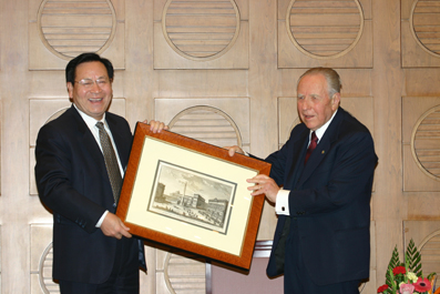 Italian President Carlo Azeglio Ciampi with his wife visited Tsinghua on December 7. Tsinghua President Gu Binglin met and had a brief talk with Mr. C.A. Ciampi.