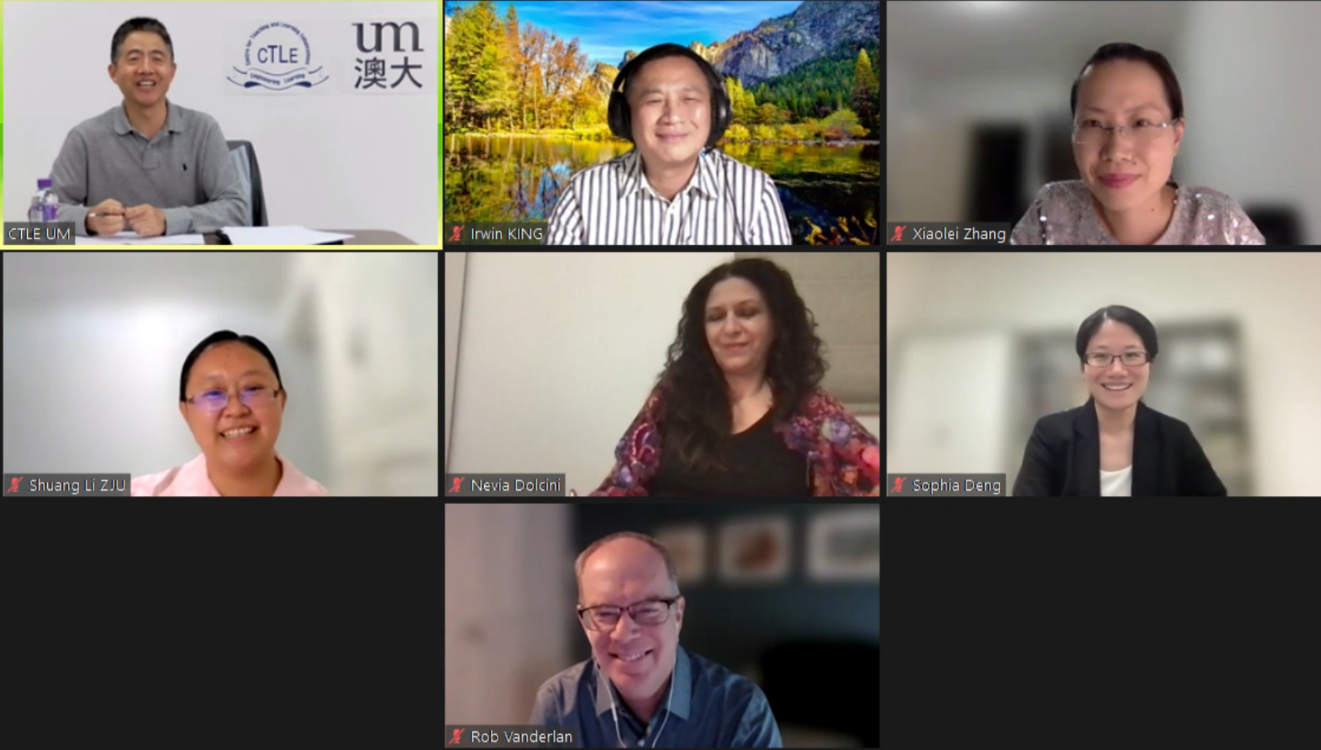 During the case studies and panel discussion that followed, Zhang Xiaolei (Associate Professor, School of Education of Tianjin University), Li Shuang (Associate Professor, Ocean College of Zhejiang University), Irwin King (Director, Centre for eLearning Innovation and Technology of the Chinese University of Hong Kong), Nevia Dolcini (Associate Professor, Department of Philosophy and Religious Studies of the University of Macau), and Sophia Deng (Assistant Professor, Department of Psychology; Academic Staff Advisor, CTLE of the University of Macau) shared their practical experience of online education and teaching of their respective institutions, and discussed the influence of the COVID-19 pandemic on online education and the advantages of hybrid teaching. They agreed that digital technology could improve the efficiency and effectiveness of teaching management.