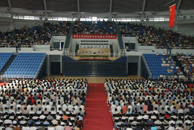 An opening ceremony was held for the new students of 2004 in the gymnasium of Tsinghua University on August 19. Tsinghua President Gu Binglin, Chen Xi, President of the University Council, He Jiankun, Vice President, and other leaders attended the ceremony.