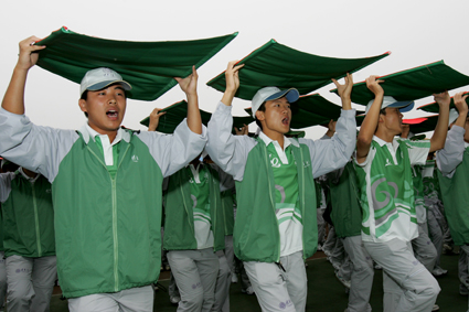 "I am very proud to have an opportunity to participate in the National Day parade. It is a precious experience to me," said a graduate student who took part in the mass pageant in observance of the National Day.