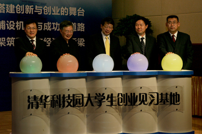 Vice-chairman of the NPC Standing Committee Hua Jianmin, Vice Minister of Education Chen Xi, Mr. Joan Bellavista, President of International Association of Science Parks, Tsinghua University President Gu Binglin, Tsinghua University Council Honorary Chairman Wang Dazhong, Tsinghua Deputy President Chen Jining, and Tsinghua Vice President Kang Kejun attended the ceremony.