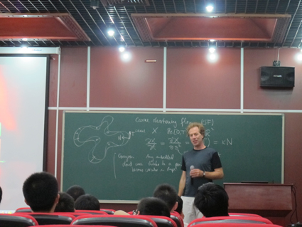 Since Prof Andrews’ membership in the MSC, he devotes himself to nurture students as well as make very significant progress in research. He taught undergraduate course of differential geometry in 2010-2011 and 2011-2012 respectively. He delivered seminars and talks at MSC, and invited foreign young mathematicians to visit Tsinghua for academic exchange activities. On research, Prof. Andrews works on differential geometry and related partial differential equations. He is well known for his work in geometric evolutions. In 2012, Professors Ben Andrews and Professor Haizhong Li of Tsinghua Math Department completed their joint work entitled ``Embedded constant mean curvature tori in the three-sphere,'' which gave a complete classification of CMC embedded tori in the three-sphere and solved the famous Pinkall-Sterling conjecture.