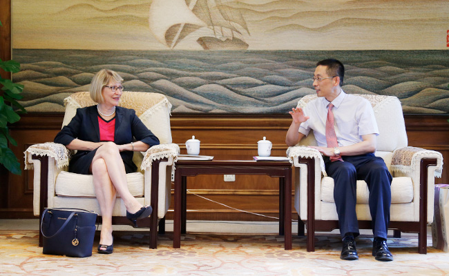 Ambassador Marja Rislakki, the Finnish Ambassador to China paid a visit to Tsinghua University on July 6th. On this, her first visit to Tsinghua, the ambassador was welcomed by Tsinghua Vice President SHI Yigong.