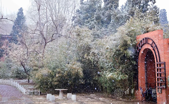 Last Saturday, nature surprised us with late snow. Tsinghua was transformed into a crystalline wonderland.