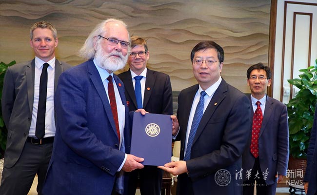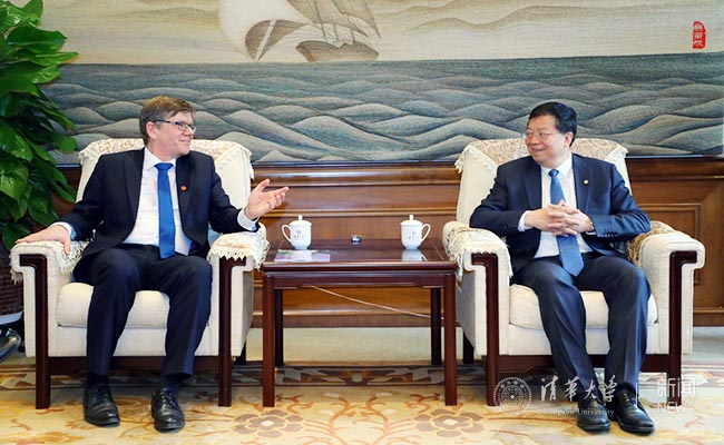 On April 17th, Qiu Yong, President of Tsinghua University, received Professor Svein Stolen, Rector of the University of Oslo (UiO), at Gongziting of Tsinghua, and exchanged views on the future cooperation between the two institutions.