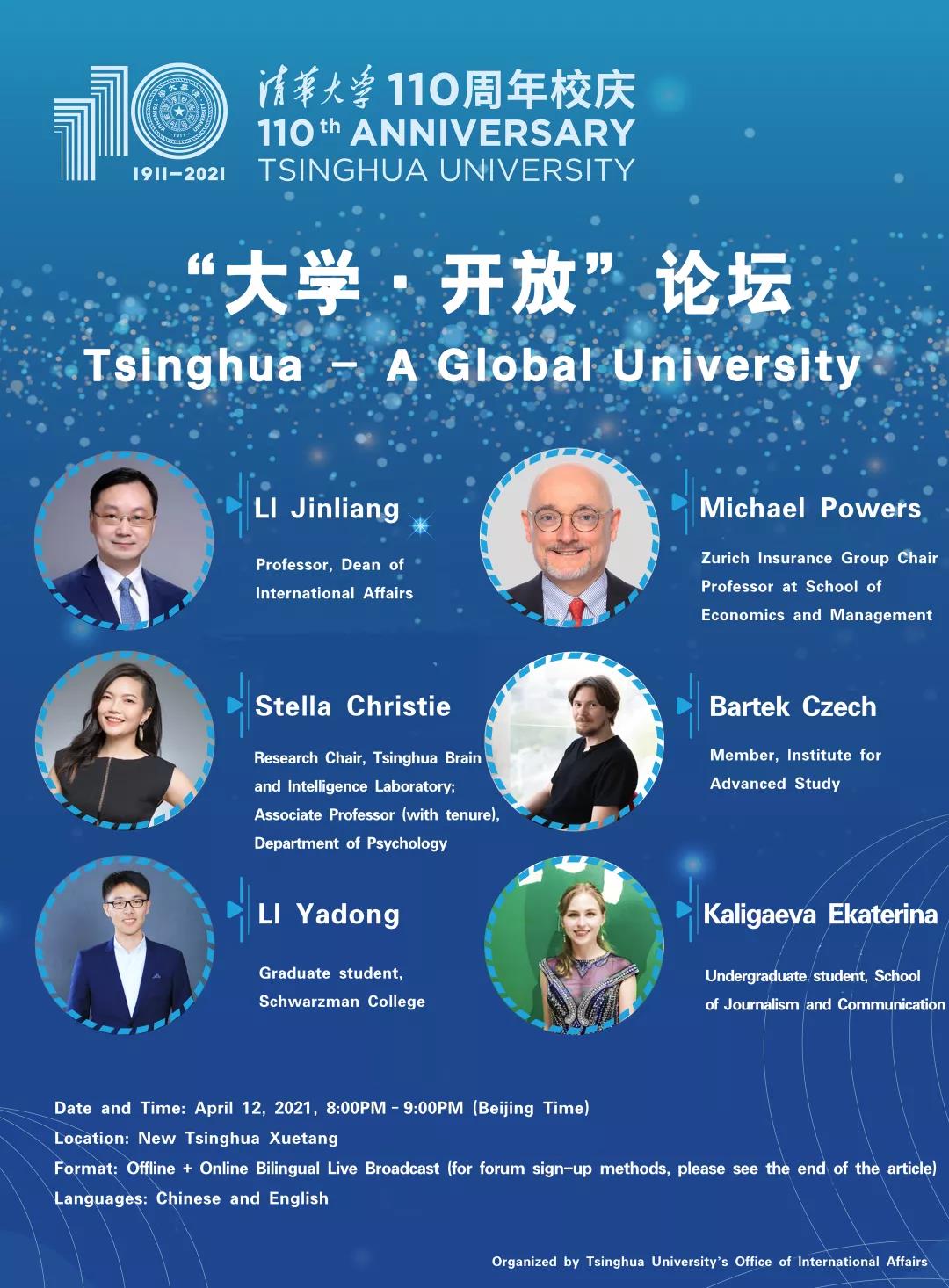 In welcoming and celebrating its 110th Anniversary, Tsinghua University will launch a series of forums under the theme of “Da Xue” (University) to be globally broadcast live from April 12th to April 16th.