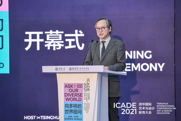 Yang Dongjiang, deputy dean of the Academy of Arts and Design, addresses the opening ceremony of the 2021 Tsinghua International Conference on Art & Design Education (ICADE 2021) on Oct. 29. [Photo provided to China.org.cn]