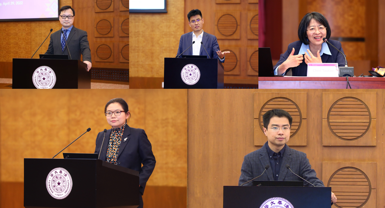 Li Jinliang chairs the event; Chen Yubo, Chen Taotao, Wang Xiaoxiao and Wang Shuaiguo deliver keynote speeches (from top to bottom and left to right)