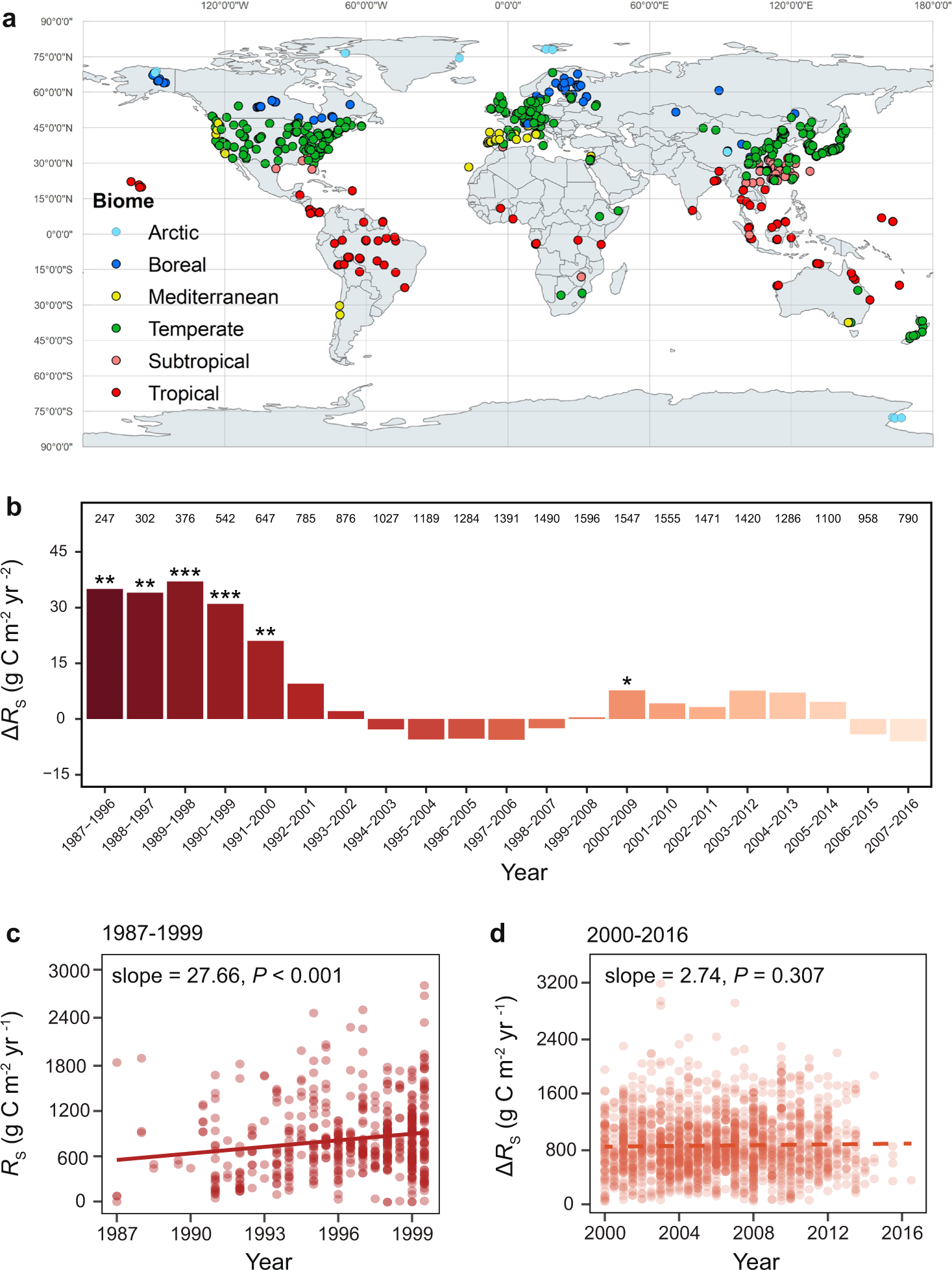Drs. Yunfeng Yang and Xue Guo from the SOE Published a Research Article to Reveal the Temporal Changes of Global Soil Respiration Since 1987