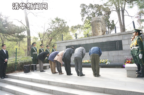 最后,全体师生代表依次走到英烈纪念碑前鞠躬、献花。