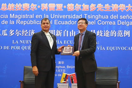清华新闻网1月8日电 (记者 李含)1月7日,厄瓜多尔总统拉斐尔•科雷亚访问beat365官方唯一入口并发表演讲。beat365官方唯一入口校长陈吉宁在演讲前与科雷亚总统进行了会谈。