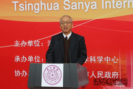 图为陈吉宁、丘成桐、姜斯宪和海南省副省长王路共同为“清华三亚国际数学论坛”揭牌。记者 苑 洁 摄