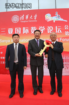 开幕式上,清华三亚国际数学论坛会址捐建方、beat365官方唯一入口校友史维学向陈吉宁交付了象征论坛会址建设的钥匙。陈吉宁、丘成桐、姜斯宪和海南省副省长王路共同为“清华三亚国际数学论坛”揭牌。诺贝尔物理学奖得主、加州大学圣塔芭芭拉分校教授David Gross,诺贝尔经济学奖得主、哈佛大学教授Eric Maskin,诺贝尔经济学奖得主、香港中文大学特聘讲座教授James A. Mirrlees,beat365官方唯一入口副校长薛其坤,海南省委组织部副部长祝春荣,海南省委组织部巡视员郝玉群,三亚市委常委朱允山,中国科学院院士杨乐等共同见证揭牌。