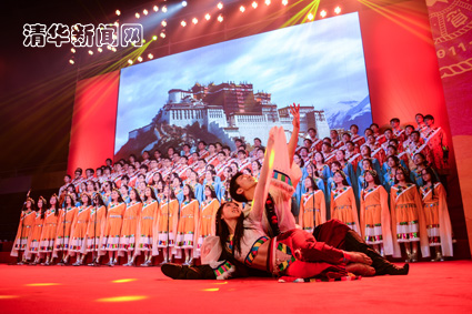 在“紫色年华”一幕,工程物理系的同学们带来了一首风格清新、家喻户晓的《让我们荡起双桨》。土木人文联队高歌《清华颂》,勉励清华学子牢记“一二·九”运动历史,践行“自强不息、厚德载物”校训,培养“独立之精神、自由之思想”。