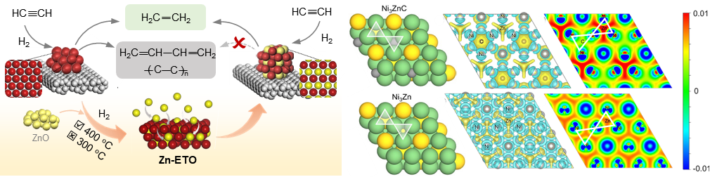 乙炔的选择性加氢是石油化工中乙烯纯化的关键反应,同时也是整合生物质、煤或天然气制乙炔工艺,实现非石油路线制乙烯的潜在方法。王铁峰和蓝晓程团队联合哥伦比亚大学教授陈经广在《化学会评论》(Chemical Society Reviews)上发表长篇综述论文“乙炔选择性加氢热催化反应最新研究进展”(Recent Advances in Thermocatalytic Acetylene Selective Hydrogenation),总结了近年来在乙炔选择性加氢方面的催化剂开发和反应机理研究的进展。研究系统梳理了该反应体系对转化率和选择性的计算基准,重点以催化剂活性位点的结构形态为切入点,将活性位点的研究分为四类:单金属位点、无序合金位点、有序金属间化合物(IMC)位点和单原子(SA)位点;强调了催化剂结构与性能之间的关系,以及不同活性金属在提升乙烯选择性和催化活性中所起的作用。此外,论文总结了催化剂载体和添加剂的影响机制,并对当前在机理理解和催化剂设计方面所面临的挑战及未来研究方向进行了深入讨论,旨在为该领域的进一步创新提供指导。