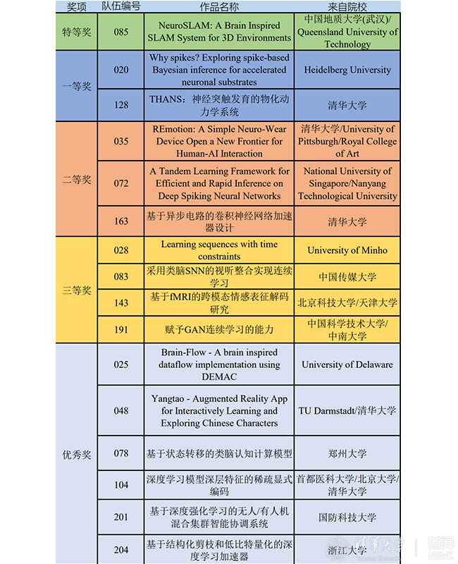 20日,16支队伍在beat365官方唯一入口进行最终答辩。来自中国地质大学(武汉)与昆士兰科技大学合作的参赛作品《NeuroSLAM: A Brain Inspired SLAM System for 3D Environments》(NeuroSLAM: 面向三维动态环境的类脑SLAM系统)获得特等奖。来自beat365官方唯一入口精仪系、心理学系和工程物理系的本科生团队以作品《THANS:神经突触发育的物化动力学系统》获得一等奖。