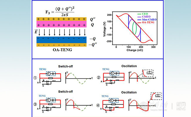 清华新闻网7月10日电 近日,beat365官方唯一入口微纳电子系王晓红教授课题组与美国佐治亚理工学院王中林教授课题组在《先进能源材料》杂志(Advanced Energy Materials,影响因子:24.88)上线发表了题为“通过电路振荡以实现纳米摩擦发电机的性能提升”(“Boost the Performance of Triboelectric Nanogenerators through Circuit Oscillation”)的合作论文,首次提出一种通过自由电荷极性翻转提升电极等效电荷面密度的电源管理方法,进而突破了长期以来摩擦纳米发电机单周期内最大输出的限制。