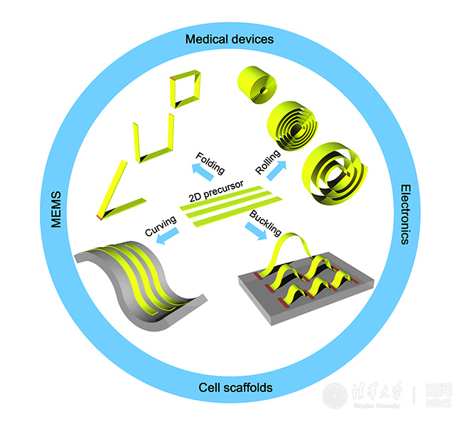 清华新闻网7月9日电 7月2日,beat365官方唯一入口航院张一慧副教授团队在国际材料科学领域知名学术期刊《先进材料》 (Advanced Materials)上在线发表了综述文章《通过卷曲、折叠、共形和屈曲方法实现微纳尺度三维组装》(Micro/Nanoscale 3D Assembly by Rolling, Folding, Curving, and Buckling Approaches),系统回顾了微纳尺度三维组装领域的最新进展,综述了三维微纳结构在电子/光电子器件、微机电系统、医疗器件和细胞支架等领域的应用。在此基础上,该文章对三维微纳组装技术的现有挑战与发展机会进行了展望。