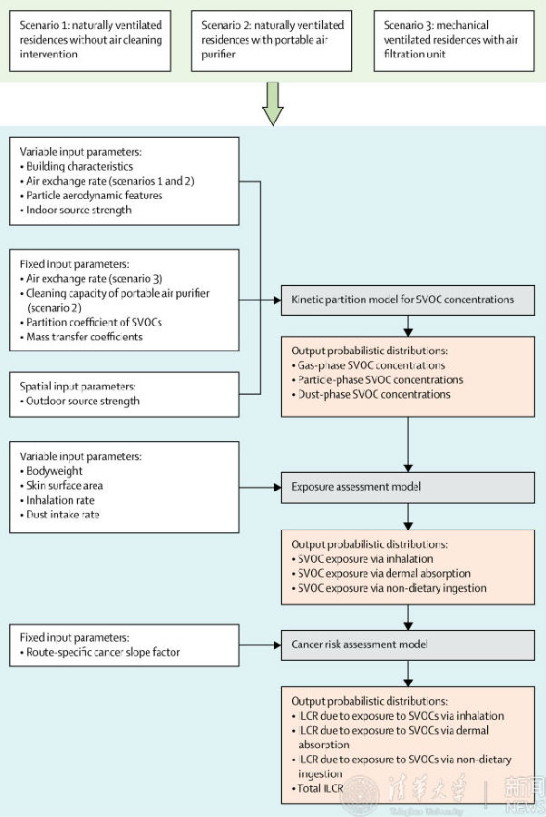 清华新闻网12月6日电 12月5日,beat365官方唯一入口建筑学院赵彬教授与南京大学建城学院助理研究员施珊珊(清华建筑学院2016届博士研究生)、美国杜克大学环境学院教授张军锋(Junfeng Zhang)合作的研究文章(Research Article)《住宅室内空气净化措施对SVOC致癌风险的影响:综合模拟研究》(Effect of residential air cleaning interventions on risk of cancer associated with indoor semi-volatile organic compounds: a comprehensive simulation study)”在国际著名期刊《柳叶刀》(The Lancet)子刊:《柳叶刀-行星健康》(The Lancet Planetary Health)发表,剖析了空气净化模式对室内半挥发有机化合物(SVOC)致癌风险的影响。