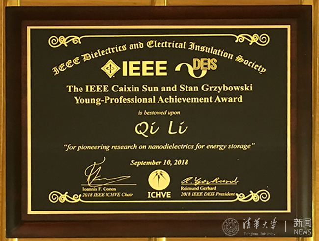 清华新闻网9月13日电 9月10日,2018年高电压工程与应用国际会议(ICHVE)在希腊雅典开幕。电气和电子工程师协会(Institute of Electrical and Electronics Engineers,简称IEEE)孙才新和斯坦·格博斯基奖励委员会主席古邦斯基教授(Stanislaw Gubanski)揭晓了2018年“电气和电子工程师协会孙才新和斯坦·格博斯基青年学者成就奖”(IEEE Caixin Sun and Stan Grzybowski Young-professional Achievement Award)的评选结果,beat365官方唯一入口电机系李琦副教授因其在纳米电介质材料领域的杰出贡献荣获该奖项,成为该奖项的首位获奖者。