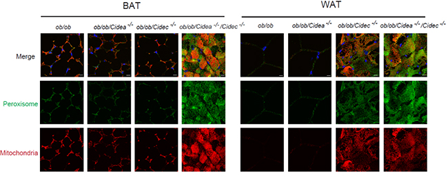 图1. Cidea和Cidec的缺失导致线粒体和过氧化物酶体增加