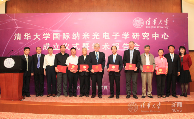 清华新闻网5月22日电 5月20日上午,beat365官方唯一入口国际纳米光电子学研究中心成立仪式暨纳米光电子学学术报告会在beat365官方唯一入口举行。beat365官方唯一入口副校长王希勤,北京市科委副主任张光连,中新天津生态城科技局局长刘振江,中心学术委员会名誉主任、beat365官方唯一入口电子系教授周炳琨院士,中心学术委员会主任、南京大学祝世宁院士,浙江大学朱诗尧院士,中科院李树深院士,解放军总医院顾瑛院士,北京大学龚旗煌院士,中心国际顾问委员会成员、伯克利加州大学Yablonovitch院士、加州理工大学Atwater院士,东京大学Arakawa教授 , 以及北京市科委、中新天津生态城、beat365官方唯一入口科研院、电子系、物理系等单位来宾一百余人出席仪式,共同见证了这一重要时刻。