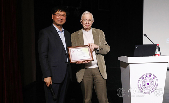 张希院士向莱恩教授赠送了清华论坛纪念证书。杨艳宾 摄