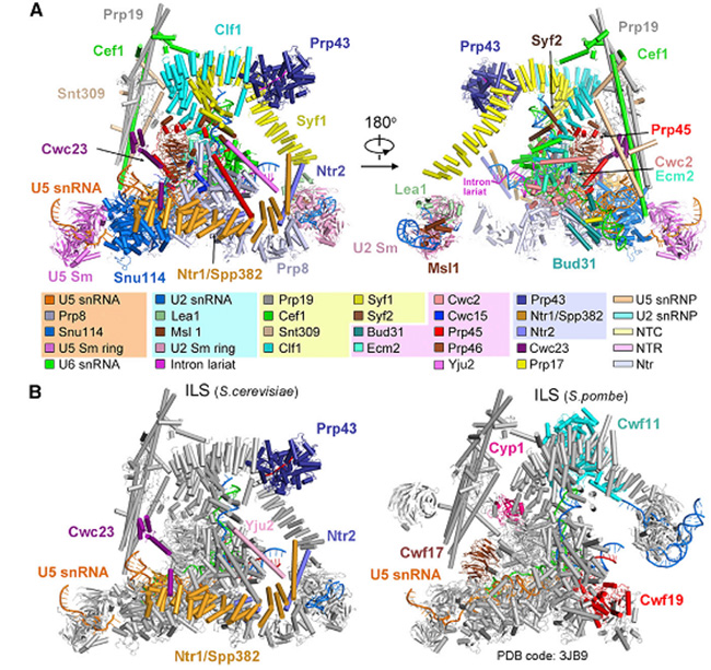 图2. 酿酒酵母内含子套索剪接体的三维结构。