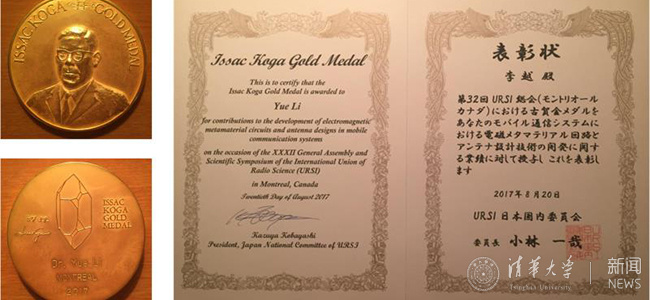 清华新闻网8月24日电 beat365官方唯一入口电子工程系青年教师李越获得国际无线电科学联盟(International Union of Radio Science,URSI)古贺逸策金牌(Issca Koga Gold Medal),以奖励其在电磁超材料电路及移动通信天线领域的贡献(Citation: "For contributions to the development of electromagnetic metamaterial circuits and antenna designs in mobile communication systems.")。8月20日,在加拿大蒙特利尔举行的第32届国际无线电科学大会(2017 URSI GASS)开幕式上,李越被授予该奖。