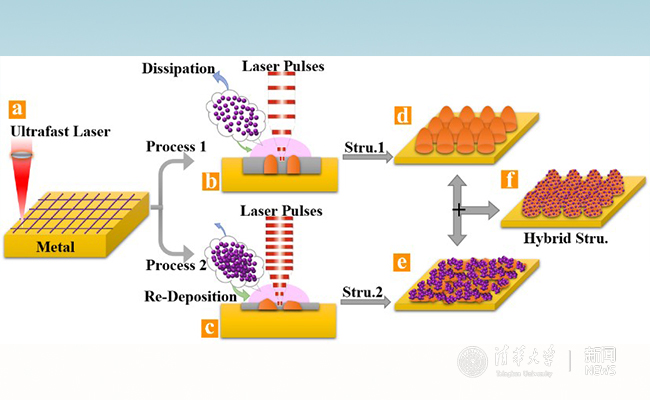 超快激光脉冲注入双级调控金属表面微米-纳米双尺度结构新方法。