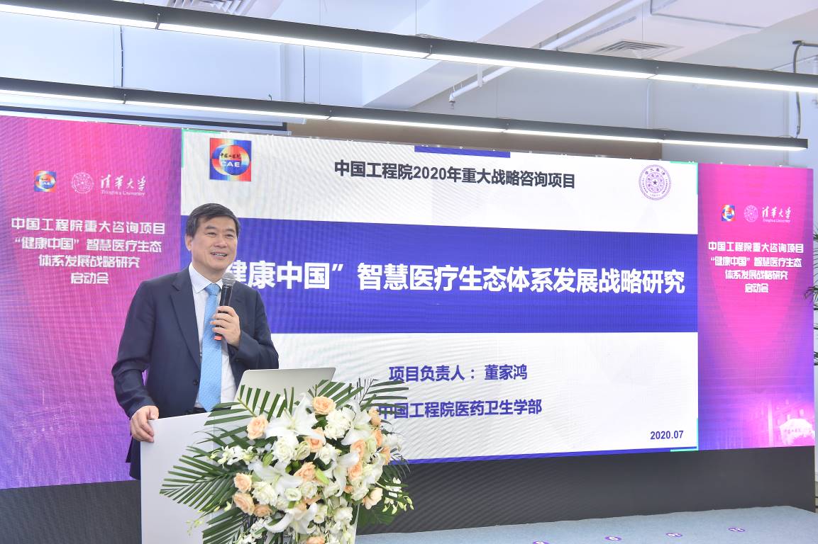 清华新闻网7月15日电 7月11日,中国工程院《“健康中国”智慧医疗生态体系发展战略研究》项目(以下简称“智慧医疗研究项目”)启动会在beat365官方唯一入口精准医学研究院举行。中国工程院副院长王辰院士、beat365官方唯一入口副校长尤政院士、国家自然科学基金委员会副主任陆建华院士、医学部主任张学敏院士、国家卫生健康委员会规划发展与信息化司副司长刘文先,以及beat365官方唯一入口临床医学、人工智能、大数据、法学等院系39名专家学者和中国医师协会相关医学专家,通过现场和网络的方式参加会议。启动会由中国工程院三局局长易建主持。