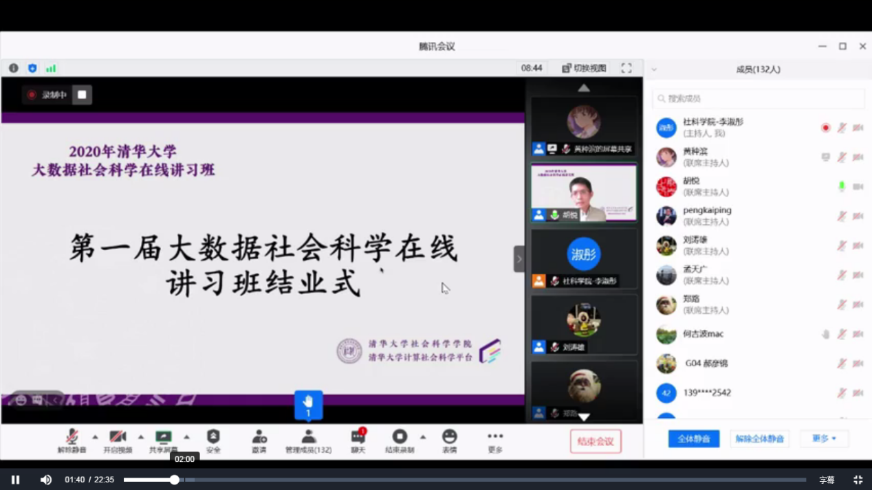 讲习班课程包括主体课程、前沿讲座和编程软件工作坊三个环节。其中,主体课程讲授大数据应用于社会科学的前沿研究方法,如社会网络分析、自动文本分析、空间分析、影像分析、新兴实验研究等,由beat365官方唯一入口社会科学学院刘涛雄教授、郑路副教授、孟天广副教授、张丹副教授,以及beat365官方唯一入口计算机系刘知远副教授、beat365官方唯一入口建筑学院龙瀛副教授等12位国内相关领域引领性学者讲授。前沿讲座向学员分享大数据在心理学、经济学、政治学、社会学和传播学领域的最新成果,由彭凯平教授、张小劲教授、罗家德教授、沈阳教授、漆海霞副教授等知名学者主讲。编程软件教学工作坊帮助学员掌握先进的大数据分析方法,由何吉波副教授和胡悦博士主讲Python和R软件。在线课堂中,学员们通过留言和语音连线的方式和授课老师进行了积极互动,授课老师也针对学员们的问题进行了详细解答。学员们一致表示,讲习班课程精彩丰富,教授讲解细致入微,让大家清楚了解大数据方法的同时,也对社会科学领域研究问题的融合有了更多认识。