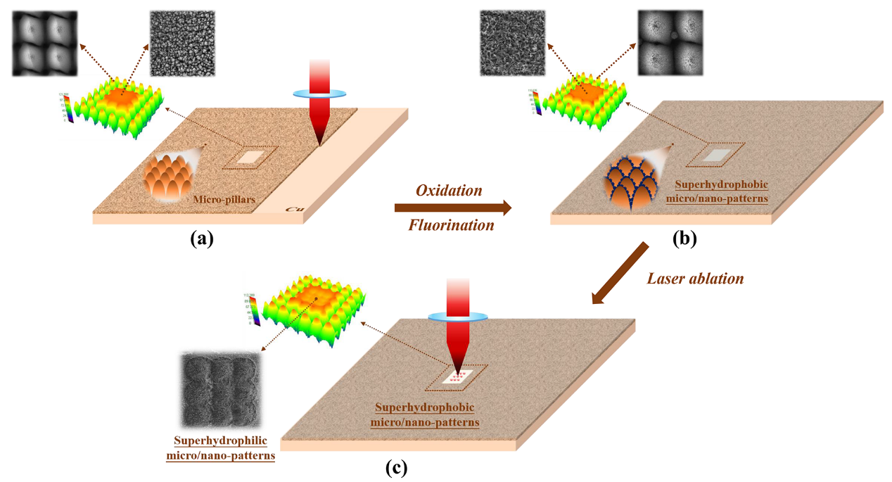 图2 超疏水表面的蒸发浓缩过程,浓缩产物集中在中心的超亲水区域