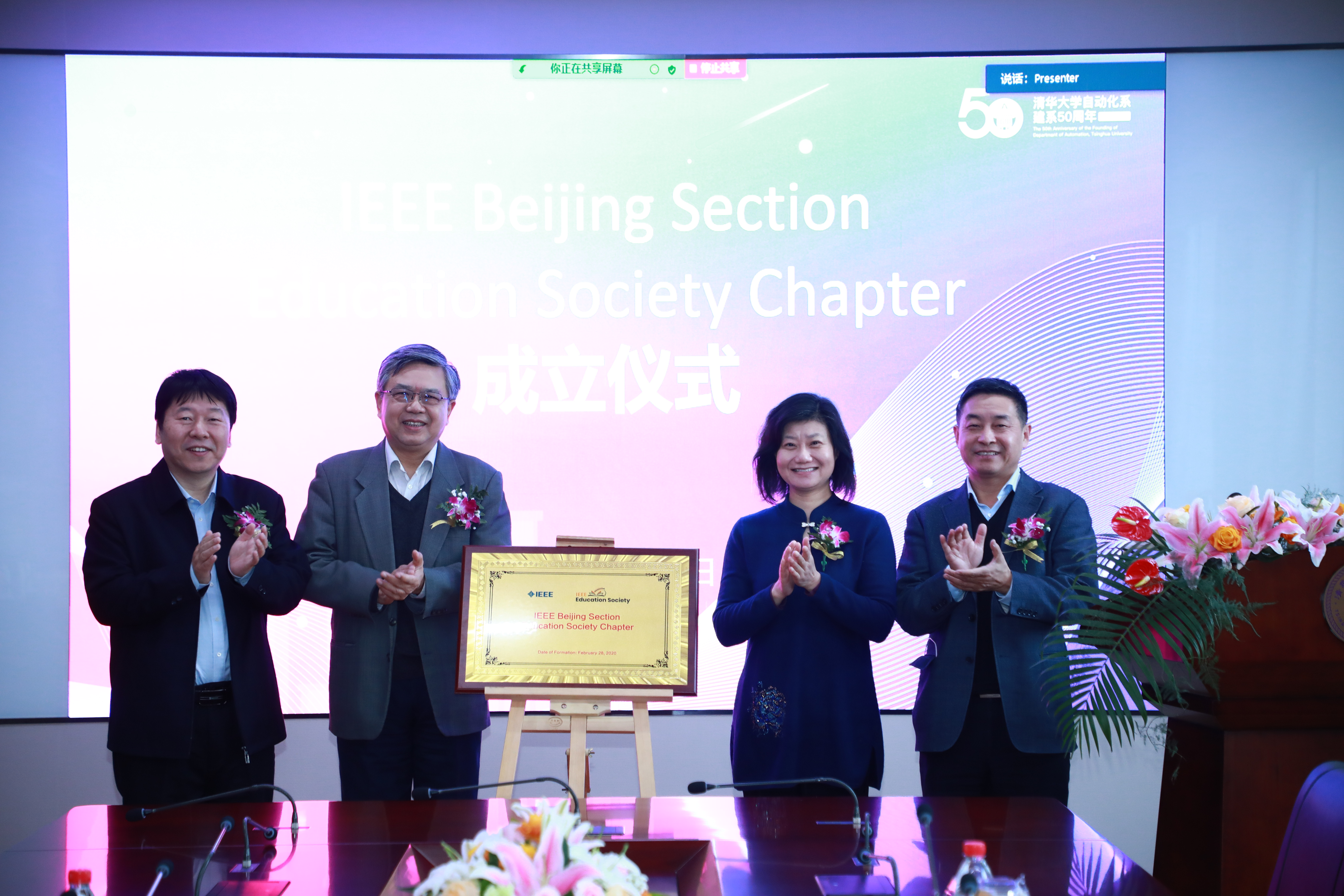 在成立仪式上,闻映红、龚克和张涛共同为专委会揭牌,蔡伯根和全体参会人员共同见证了IEEE教育协会北京分会专业委员会成立。