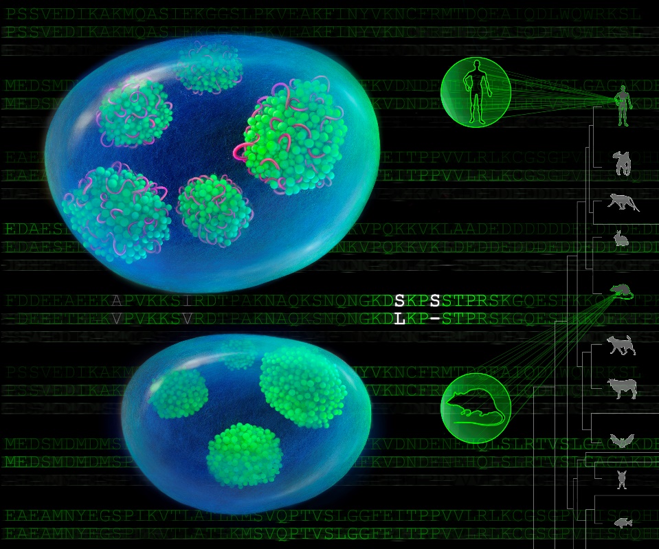 图2. NPM1蛋白两个位点的人鼠差异导致人类细胞核仁中特异的LETN-NPM1互作