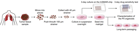 图1 从患者肿瘤中建立LCOs,用于随后长期培养以及为期一周的InSMAR-chip上药物敏感性试验流程图