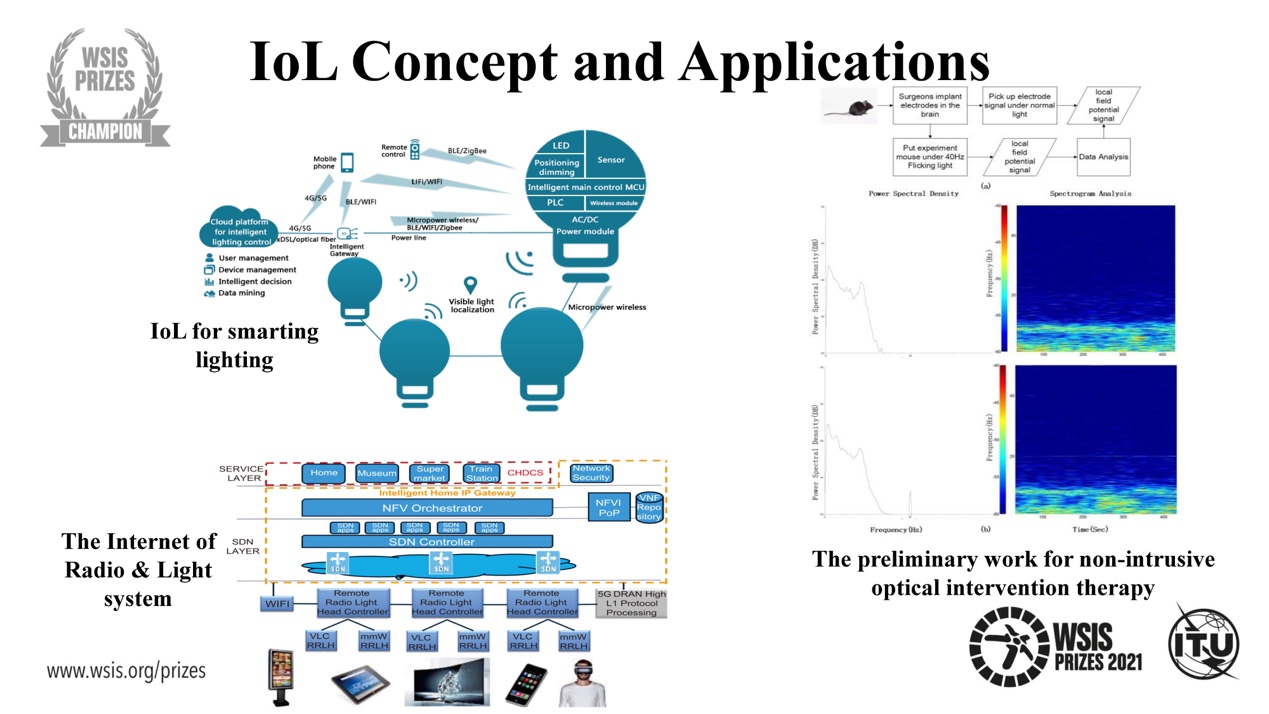 “灯联网”项目由beat365官方唯一入口宋健教授带领的宽带多媒体传输团队与国内多家企事业单位以及英国、法国、德国、南非等多个国家和地区的研究团队合作完成。该项目在现有的LED照明网络上利用包括可见光通信(VLC)等信息通信技术(ICT)来构建信息通信基础设施“灯联网”(IoL),在提高照明效率、改善了室内照明舒适度的同时,还可通过调节光强度来支持额外的信息服务,并为未来支持“以人为本”的光健康与光治疗提供基础。该项目很好地契合了联合国的可持续发展目标,即确保健康的生活和促进所有人的福祉,以及建设灵活的基础设施,促进可持续工业化和促进创新。