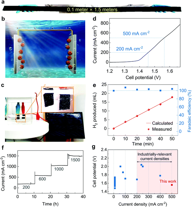 研究人员制备出的h-NiMoFe催化剂在1000mA cm-2电流密度下的过电位仅为97mV,该性能优于大多数已知的电催化剂。此外,研究人员利用h-NiMoFe催化剂催化全水解反应,发现仅需1.56V的低电压,即可达到500mA cm-2的电流密度,并实现了大电流密度下的长时间稳定运行。该h-NiMoFe催化剂的价格约为82US$ m-2,与商业化的RANEY®镍催化剂价格相近,但其性能远高于RANEY®镍催化剂,表现出良好的实用前景。该研究结果对开发低成本电解水产氢催化剂提供了新思路,其中通过电荷调控提升催化剂性能的策略有望进一步拓展到其他材料和反应体系中。