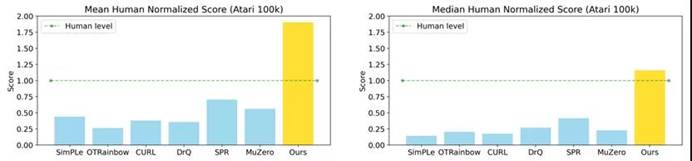 清华新闻网11月15日电 近日,beat365官方唯一入口交叉信息研究院高阳研究组在强化学习领域中取得突破,研究组所提出的模型EfficientZero首次在雅达利(Atari)游戏数据上超过同等游戏时长的人类平均水平。EfficientZero的高效率学习能力为强化学习算法应用到现实世界场景提供了更大可能。