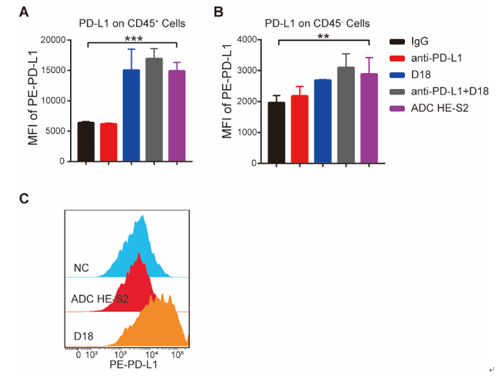 图2. IM-ADC诱导肿瘤微环境中细胞表面PD-L1的上调