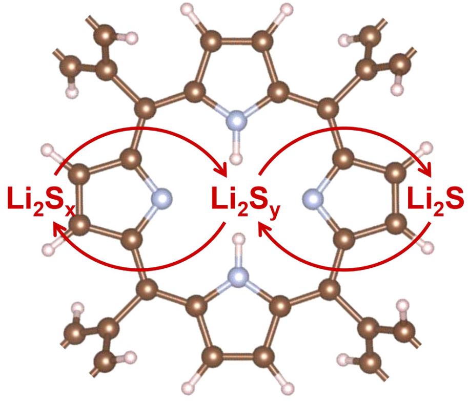 卟啉基团高效催化锂硫电池正极中硫物种转化的示意图