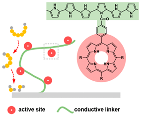 开发高性能催化剂是加速锂硫电池正极硫物种转化动力学的重要手段。其中,有机分子催化剂具有明确且可调控的分子结构,对于构效关系指认的基础研究,以及性能导向的实际应用都呈现出本征优势。张强课题组在前期研究工作中明确指认卟啉基团是一种高效催化硫物种转化的活性位点。卟啉活性位点可实现多硫化物的三效电催化(液–液、液–固、固–液转化)以提升反应动力学,从而实现了高负载和长循环的锂硫电池。