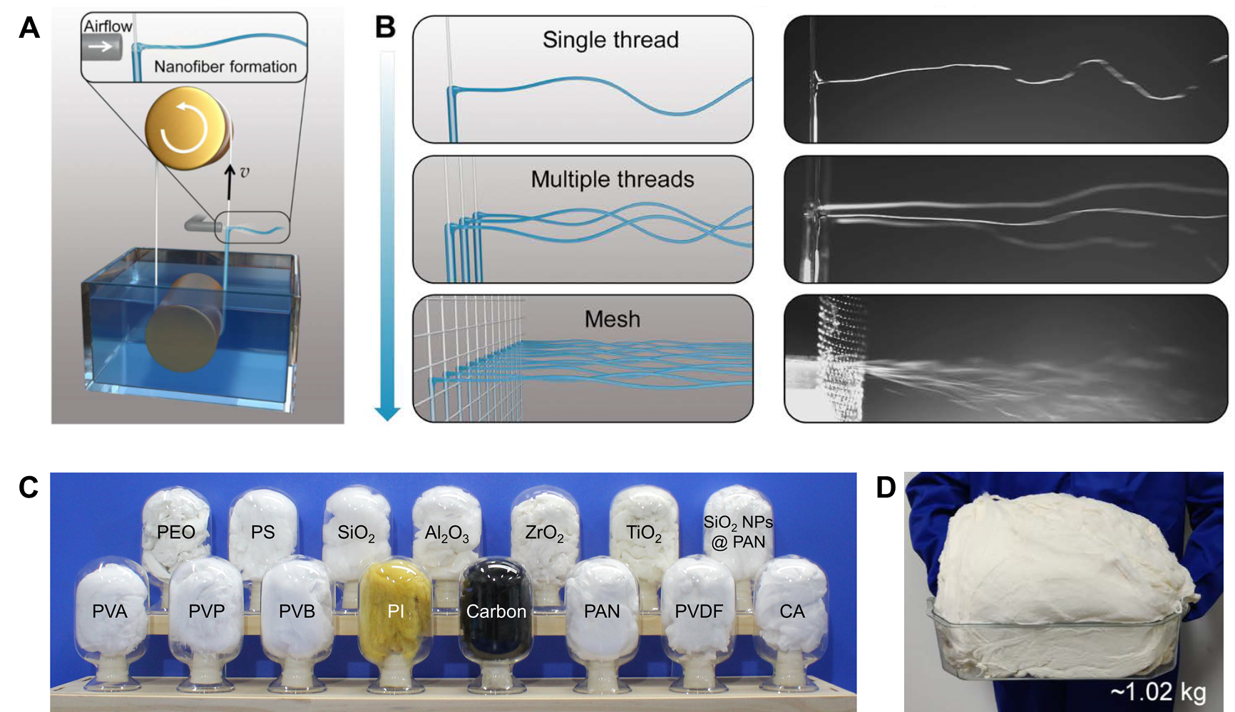 上述研究成果以“通过卡门涡旋气纺丝法实现公斤级纳米纤维的高通量制备”(High-throughput production of kilogram-scale nanofibers by Kármán vortex solution blow-spinning)为题,于3月16日在线发表在《科学·进展》(Science Advances)上,并申请了发明专利。