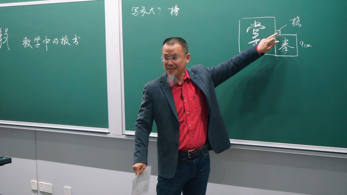 邓俊辉以“教学中的板书”为题,就教学板书的意义、策略、电子板书的玩法等多个方面与青年教师进行分享交流。结合几大教学沟通渠道特点,邓俊辉指出,“写”在教学中起到重要的调适、匹配作用,“要通过板书适时调整自己的讲授节奏,贴合学生的吸收、思考需求”,让学生真正参与到教学互动中来。此外,对青年教师而言,用板书记录教学灵感,并通过长时间的积累、研磨,形成缜密的教学逻辑和精要的教学内容,也是在进行“教学的创作”。