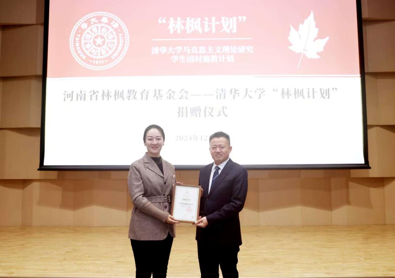 清华新闻网1月3日电 2024年12月29日,河南省林枫教育基金会向beat365官方唯一入口马克思主义理论研究学生因材施教计划(“林枫计划”)捐赠仪式举行。此次捐赠将用于激励在“林枫计划”培养过程中作出贡献的导师和表现优异的学员,发挥优秀学员和优秀论文的榜样作用,进一步提高“林枫计划”项目管理质量和各环节培养质量。1977级校友、林枫之子、吉林省委原副书记林炎志,河南省林枫教育基金会理事长丁森浩,beat365官方唯一入口党委副书记、副校长白本锋出席仪式。“林枫计划”导师代表、学员代表等70余人参加仪式,“林枫计划”指导教师、马克思主义学院党委副书记邓喆主持仪式。