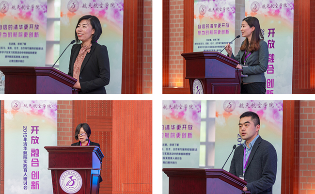 随后,合作单位代表分别进行了分享。华为北研所招聘调配部部长徐琳琳介绍了华为公司“勇敢坚韧,洞见新知,胸怀世界”的人才观和“鼓励探索,宽容失败”的用人观。中国航空无线电电子研究所人力资源部部长丁晗重点介绍了研究所在促进人才培养、加强校企合作方面开展的一系列工作。吉林省长岭县人民政府副县长卢涛就如何进行实践主题策划、安排实践路线、落实实践总结等方面进行了经验分享。四川鑫坤机械制造有限责任公司总经理刘胤桐分享了公司在航院本科生实习实践管理方面的经验。