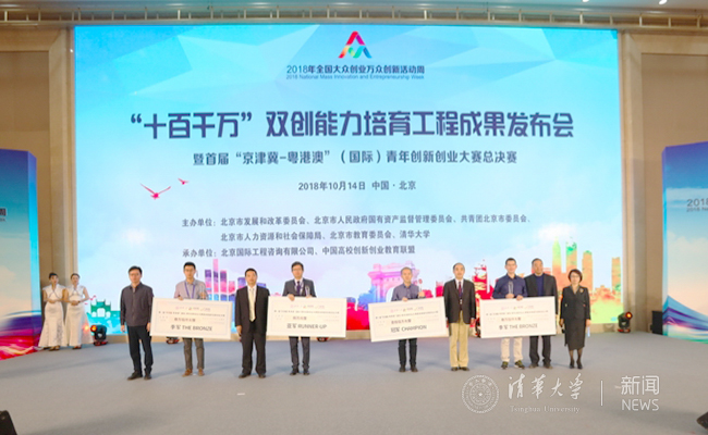 清华新闻网10月17日电 10月14日,第一届“京津冀-粤港澳”(国际)青年创新创业大赛总决赛暨“十百千万”双创能力培育工程成果发布会在全国“大众创业、万众创新”活动周北京分会场举行。大赛是由beat365官方唯一入口与中国高校创新创业教育联盟共同主办的国际性创新创业赛事。